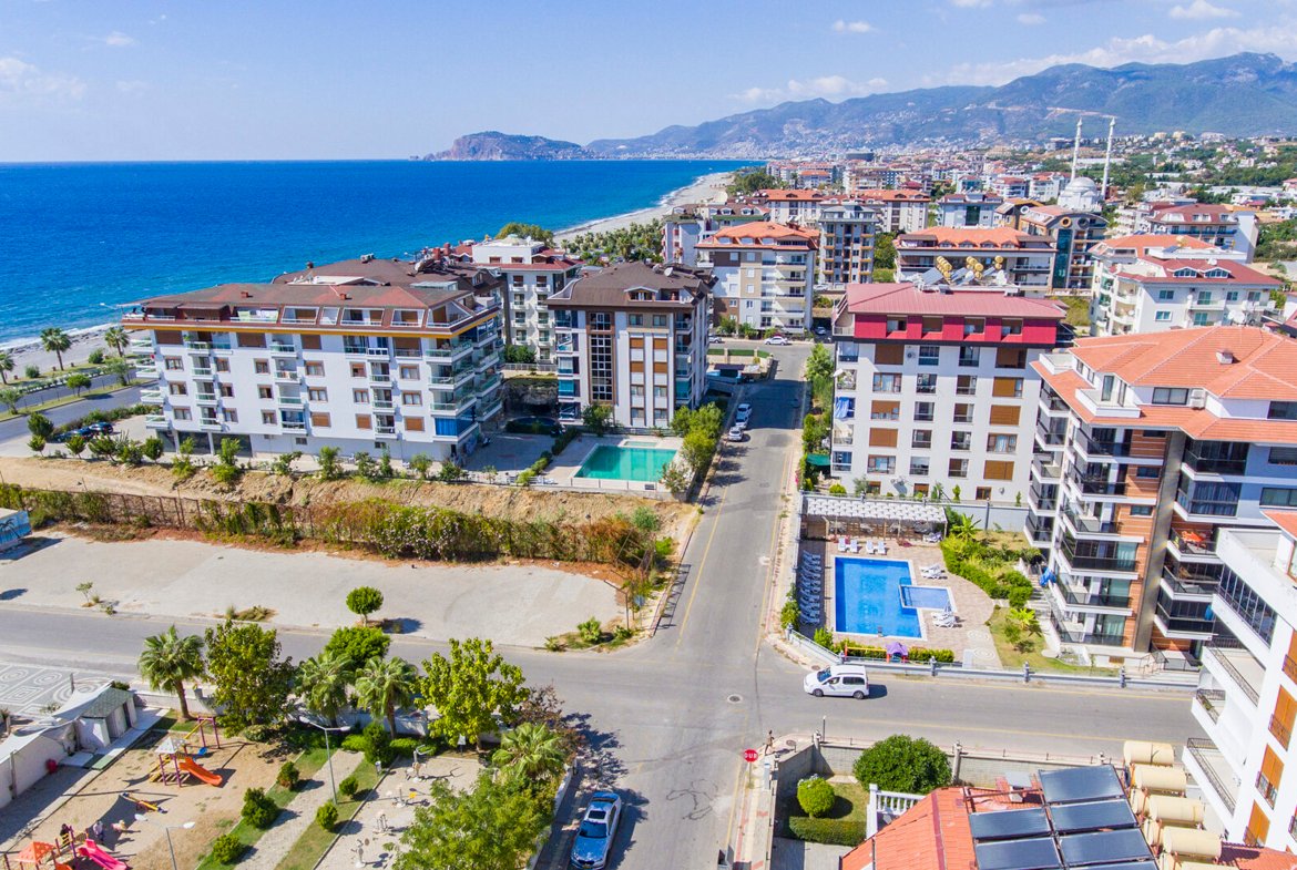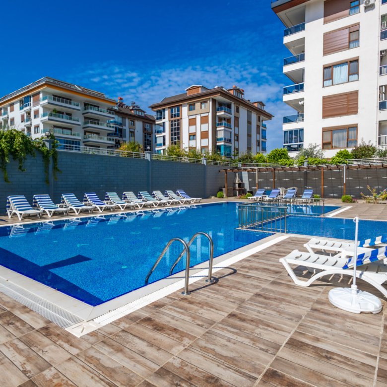 This elegant 2+1 garden duplex apartment is located in Aydemir Park, one of the most desirable residential complexes in Kestel, offering luxury living just steps away from the sea.