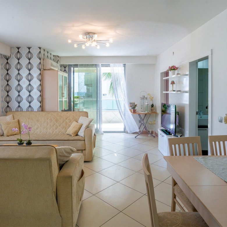 Located in the highly sought-after Obagöl area of Alanya, this 2+1 furnished apartment offers an exceptional seaside lifestyle only 50 meters from the Mediterranean Sea.