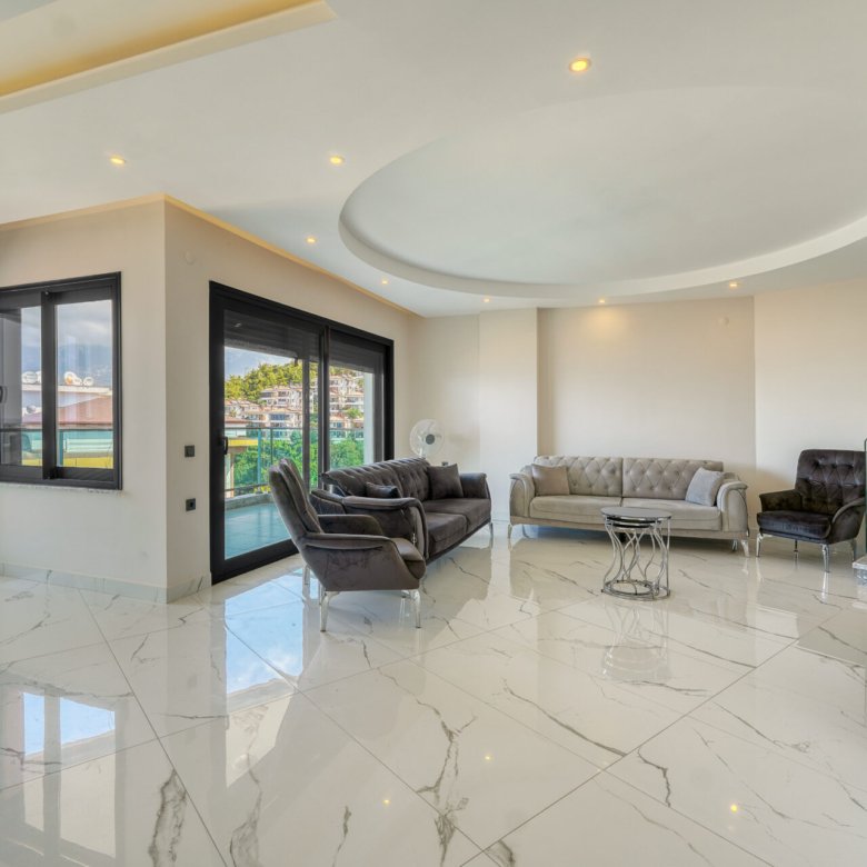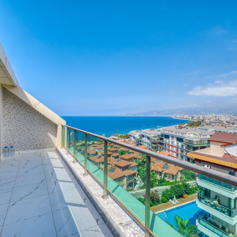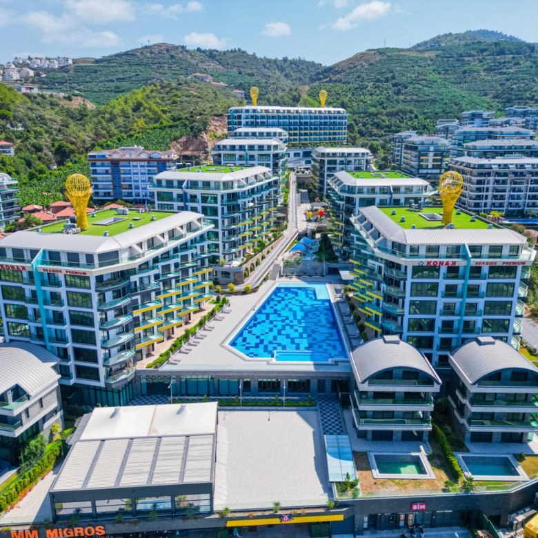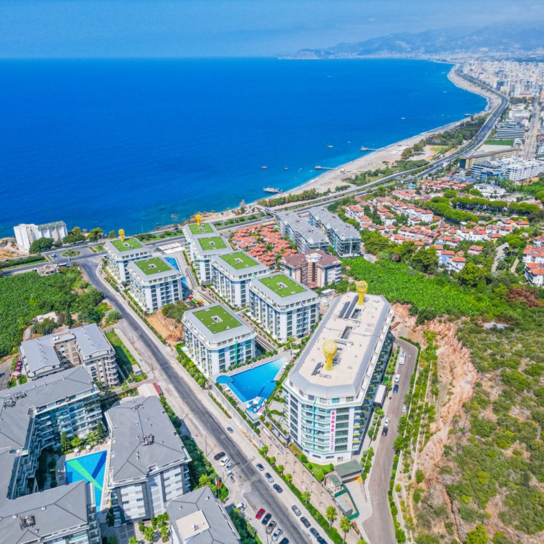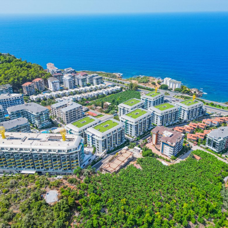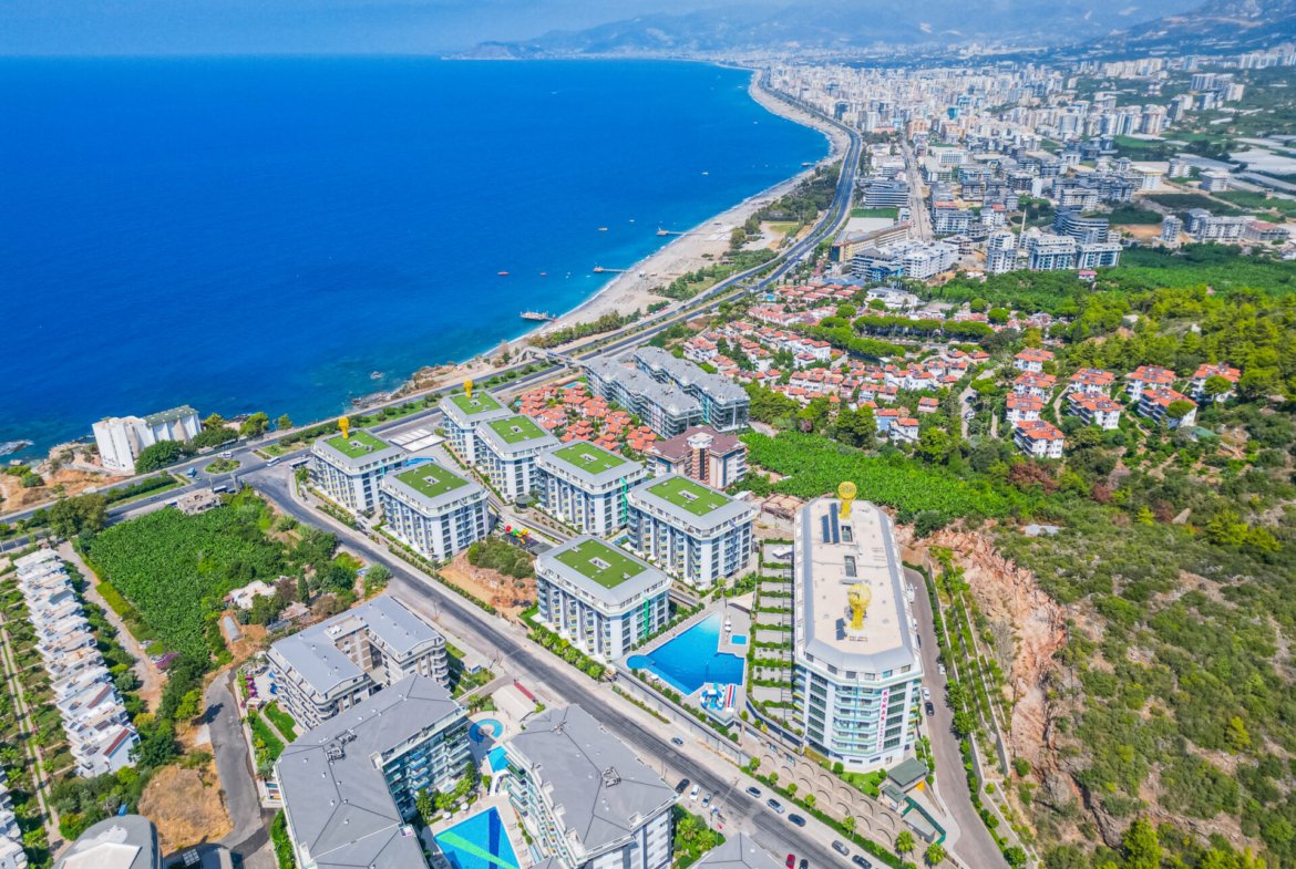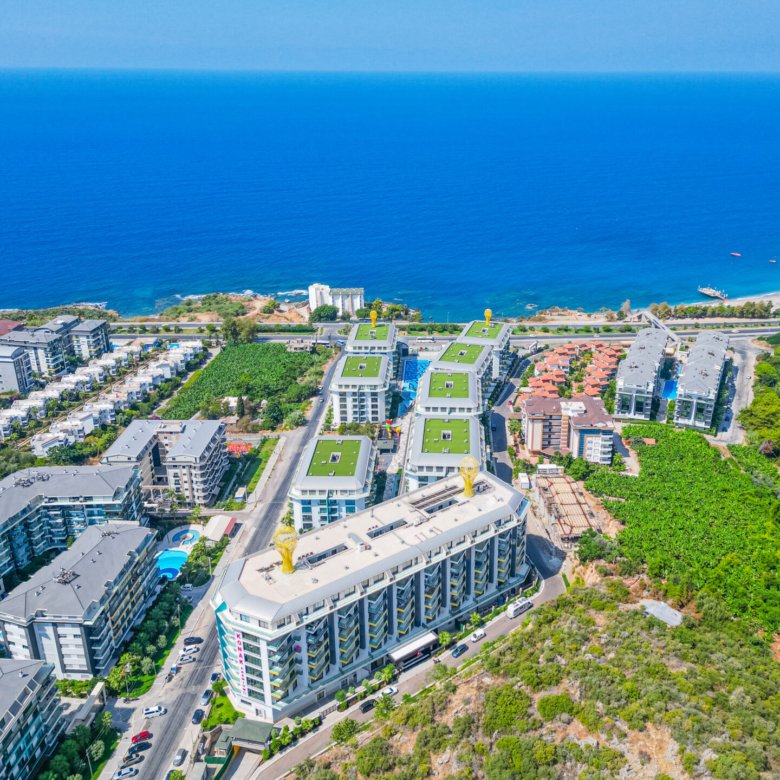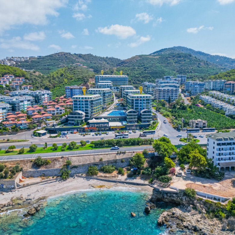 Located in the prestigious and peaceful area of Kargıcak, this seafront 3+1 duplex apartment in Konak Premium Residence offers a luxury coastal lifestyle with extensive social facilities and a prime beachfront location.