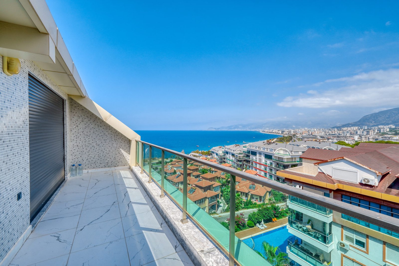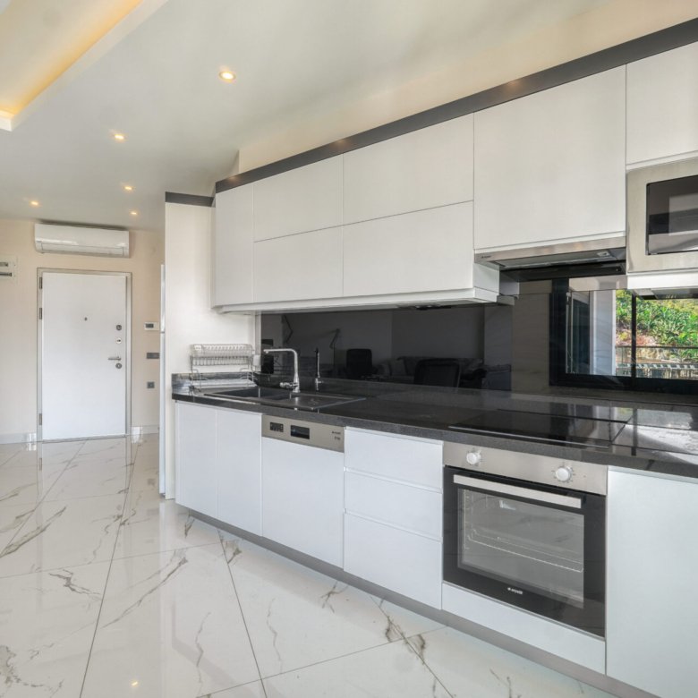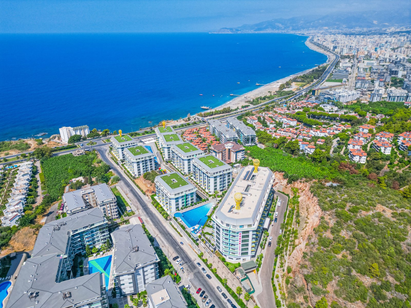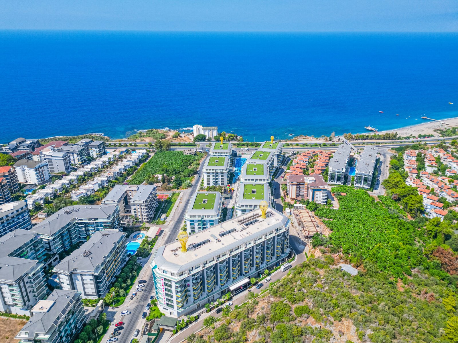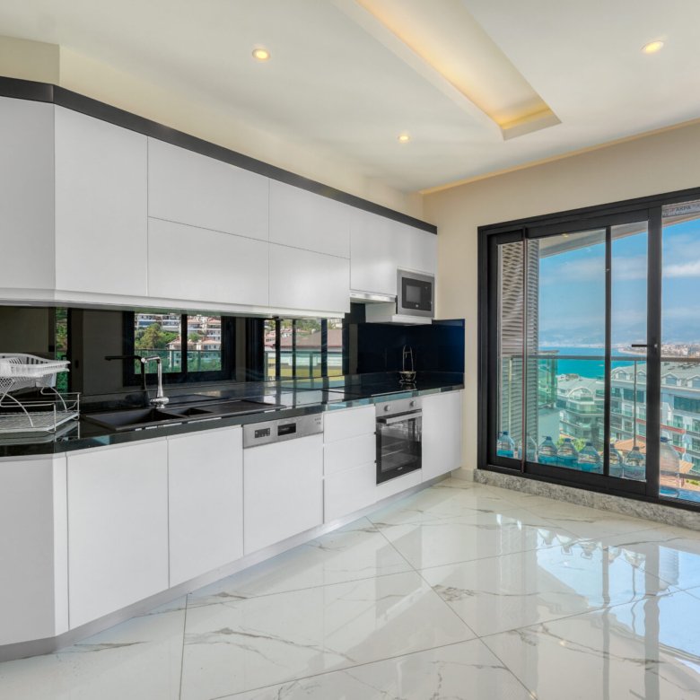 Located in the prestigious and peaceful area of Kargıcak, this seafront 3+1 duplex apartment in Konak Premium Residence offers a luxury coastal lifestyle with extensive social facilities and a prime beachfront location.
