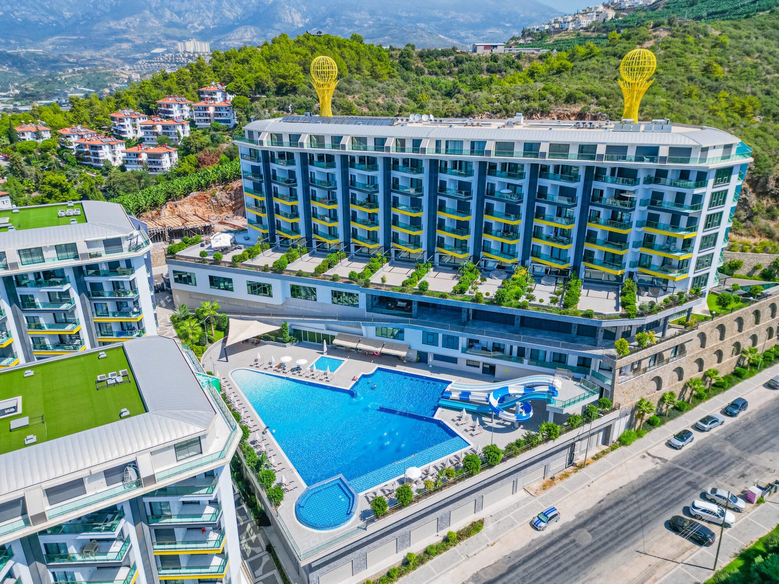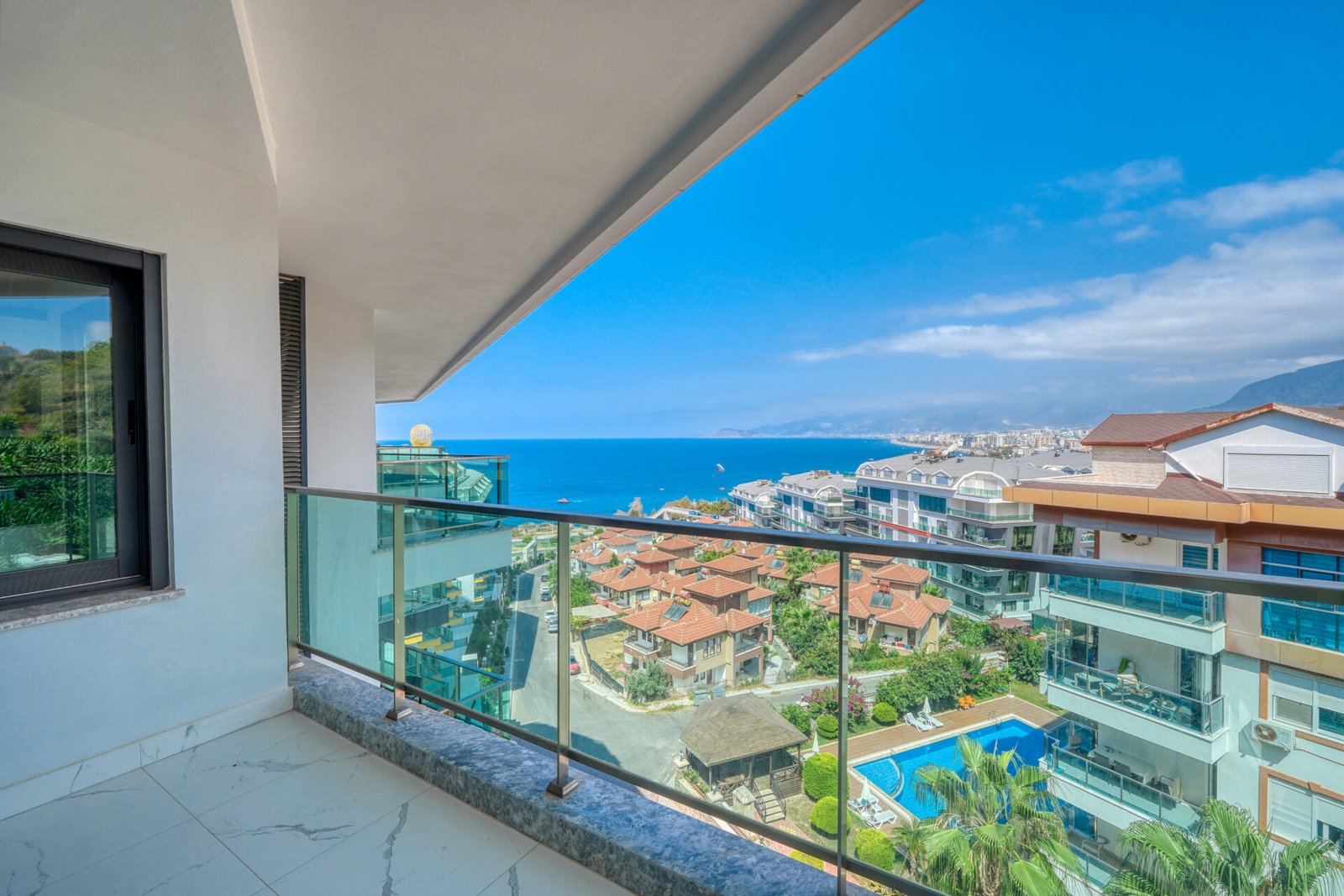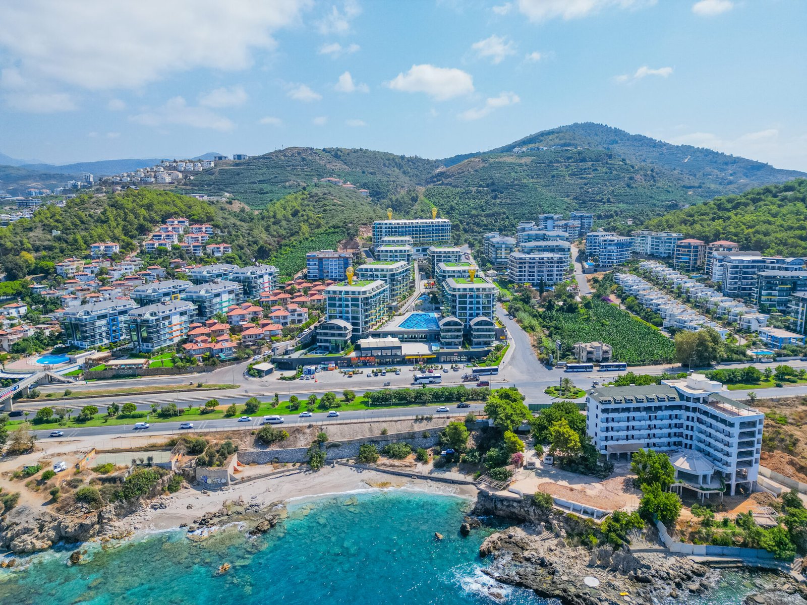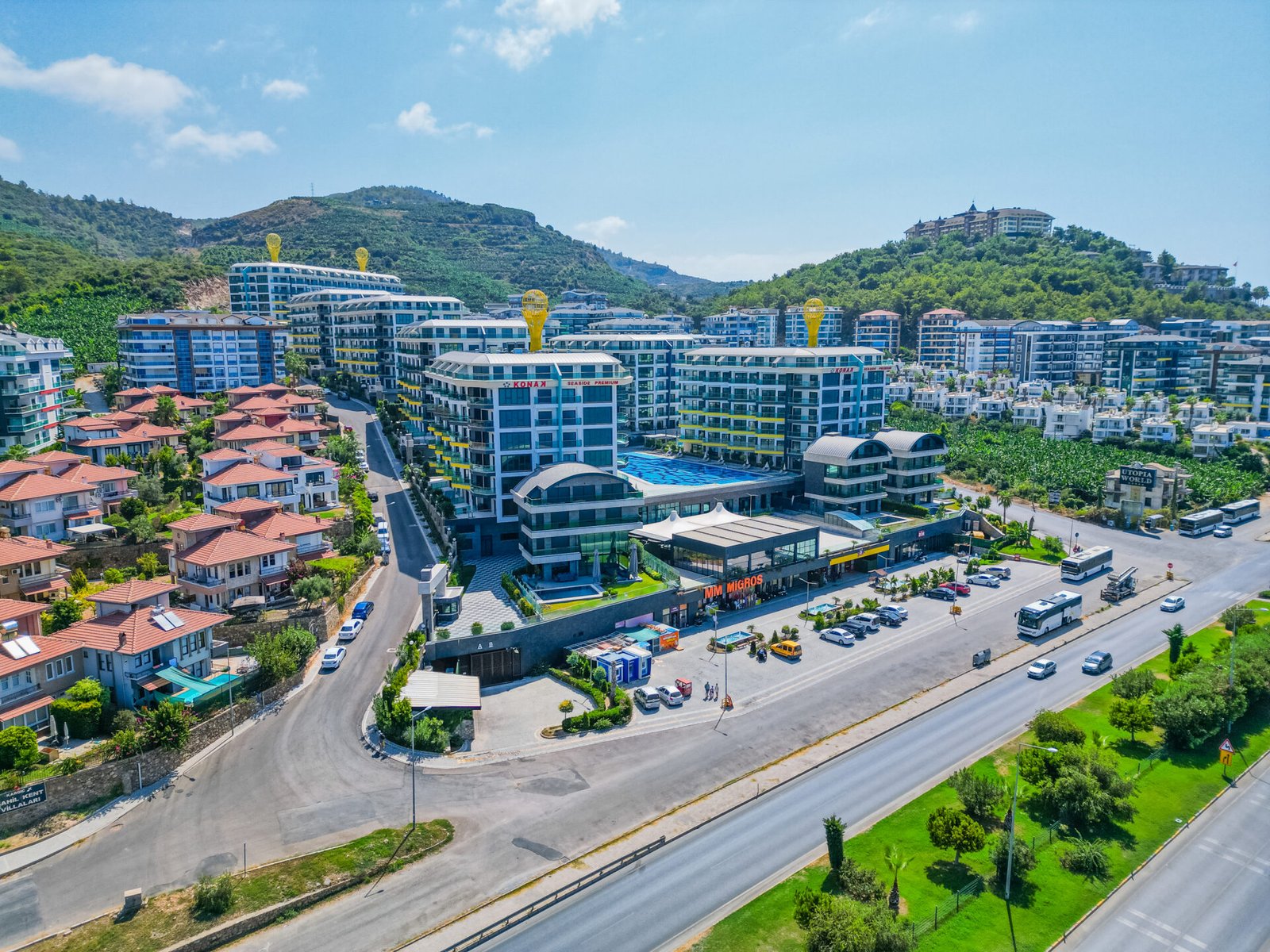 Located in the prestigious and peaceful area of Kargıcak, this seafront 3+1 duplex apartment in Konak Premium Residence offers a luxury coastal lifestyle with extensive social facilities and a prime beachfront location.