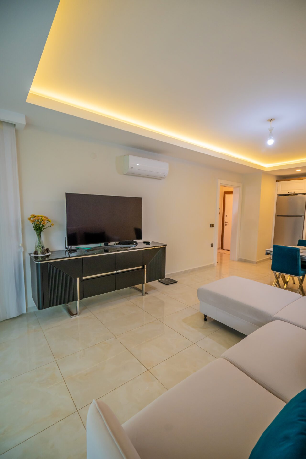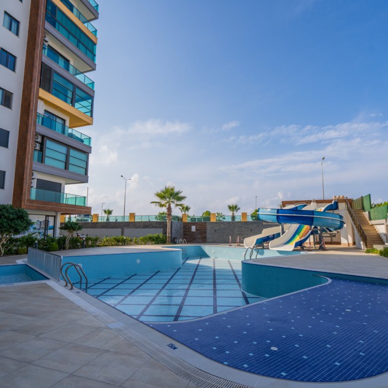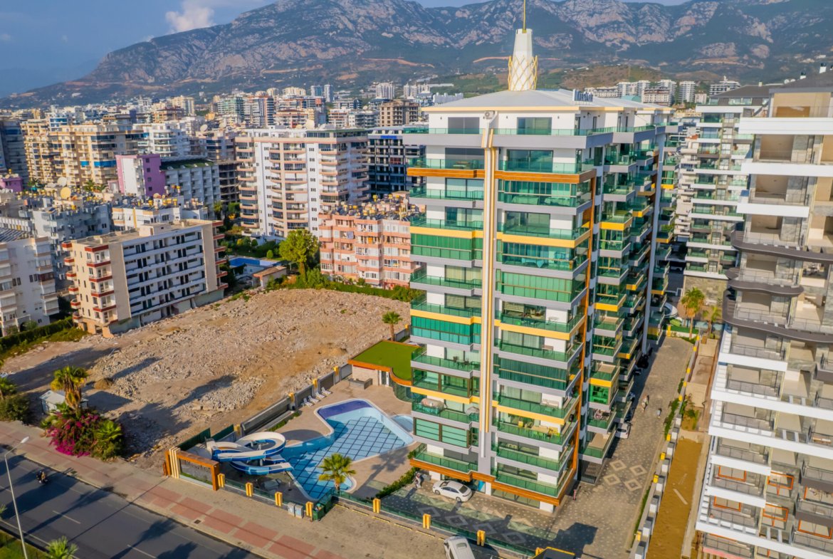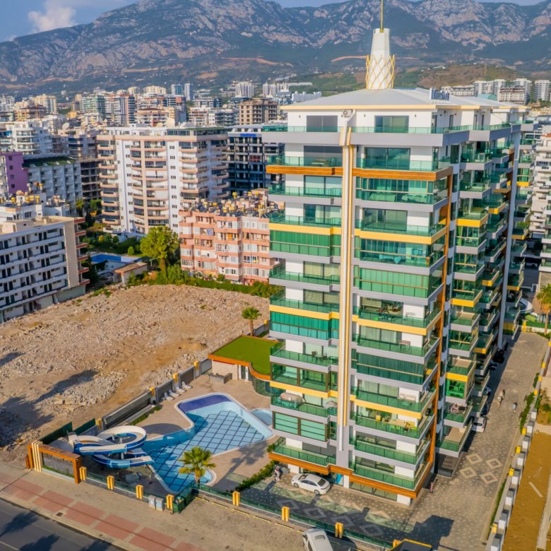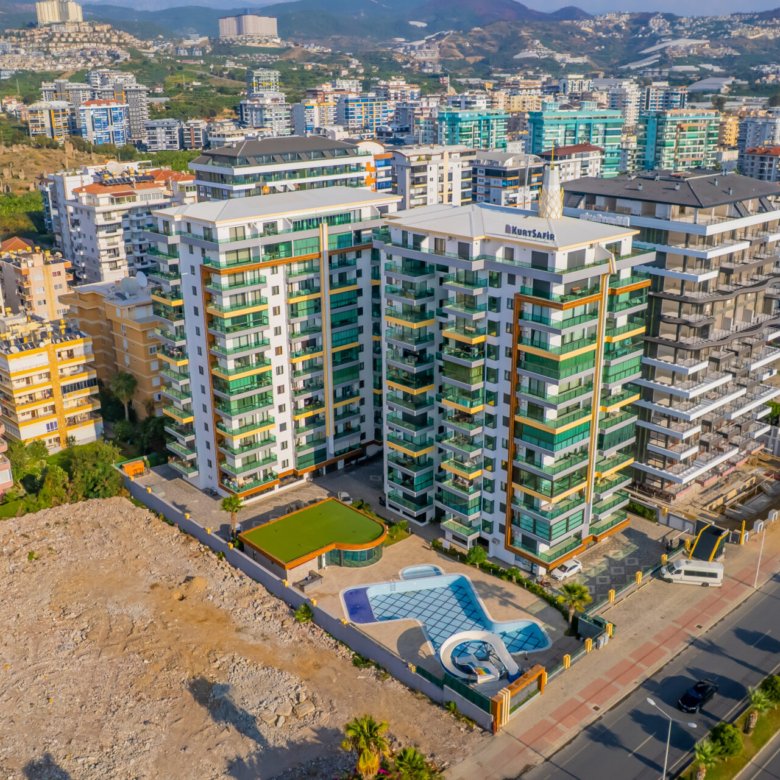Located in the popular and vibrant Mahmutlar area of Alanya, this modern 1+1 apartment in Kurt Safir Euro Residence offers comfortable living, quality construction, and beautiful sea and city views within a well-equipped residential complex.